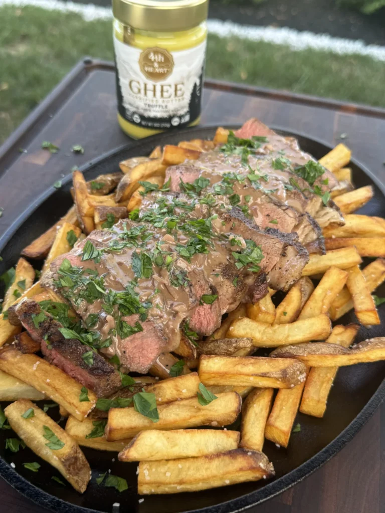Grilled Ribeye Steak Fries with Creamy Black Truffle Ghee Sauce