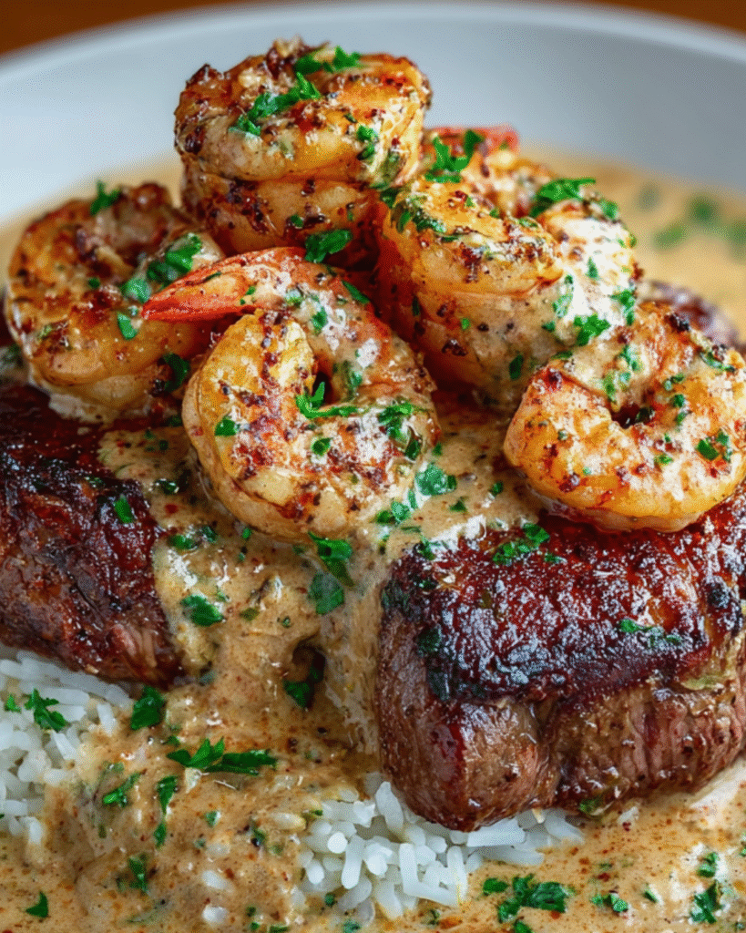 This show-stopping surf and turf dish brings together perfectly seared sirloin steak with succulent shrimp
