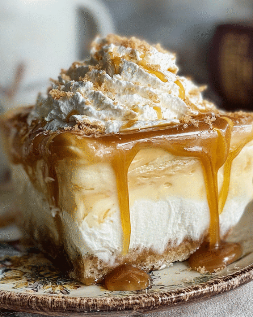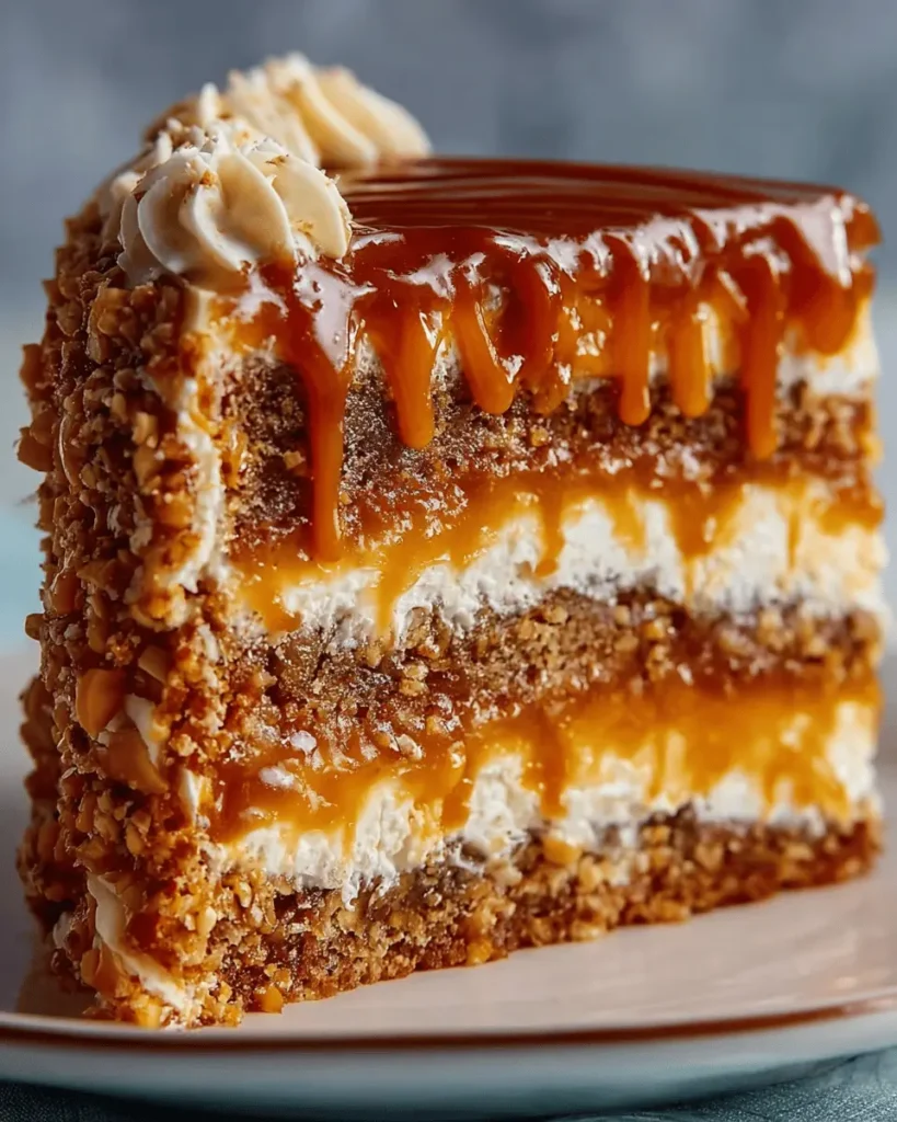 This caramel crunch layer cake delivers pure indulgence by stacking three tender, buttery cake layers