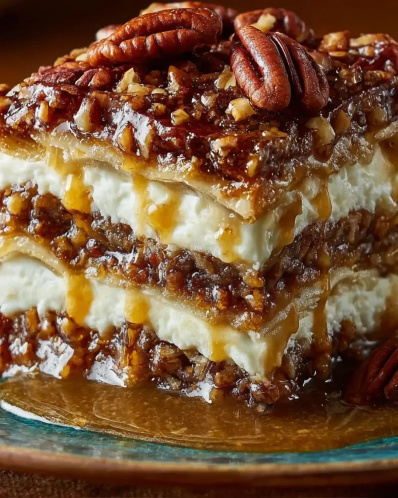 This show-stopping no-bake dessert reimagines classic pecan pie by layering a buttery graham cracker crust