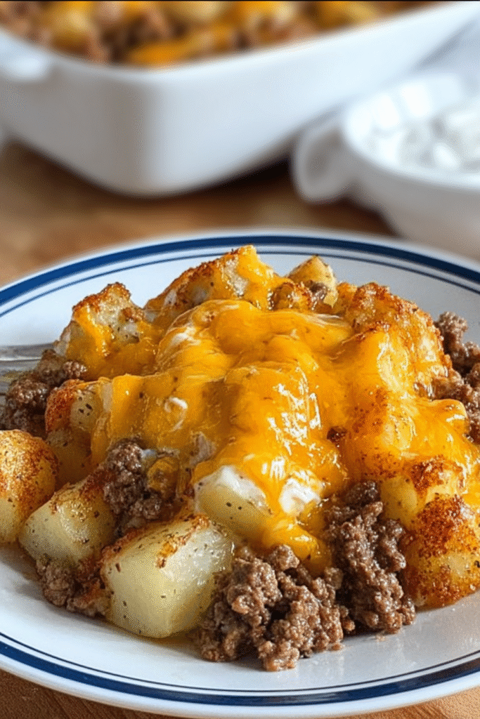 This classic casserole layers thinly sliced, butter-coated potatoes with a creamy ground beef mixture enriched