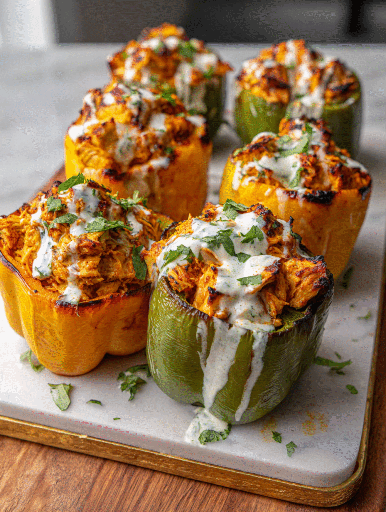 These Chicken Shawarma Stuffed Peppers capture all the bold, aromatic flavors of traditional Middle Eastern