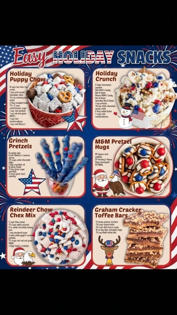 Holiday Puppy Chow combines crispy rice Chex cereal with a rich chocolate-peanut butter coating, then