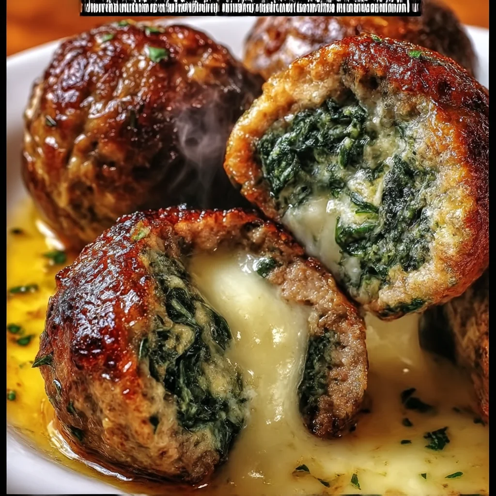 Spinach Garlic Meatballs Stuffed with Mozzarella