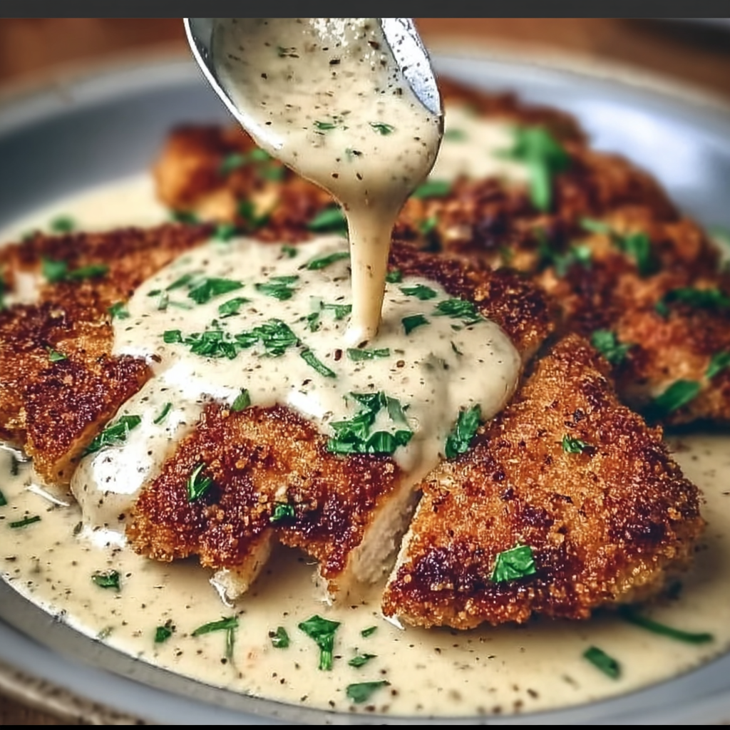 This Crispy Parmesan Chicken with Creamy Garlic Sauce combines oven-baked chicken breasts coated in Parmesan