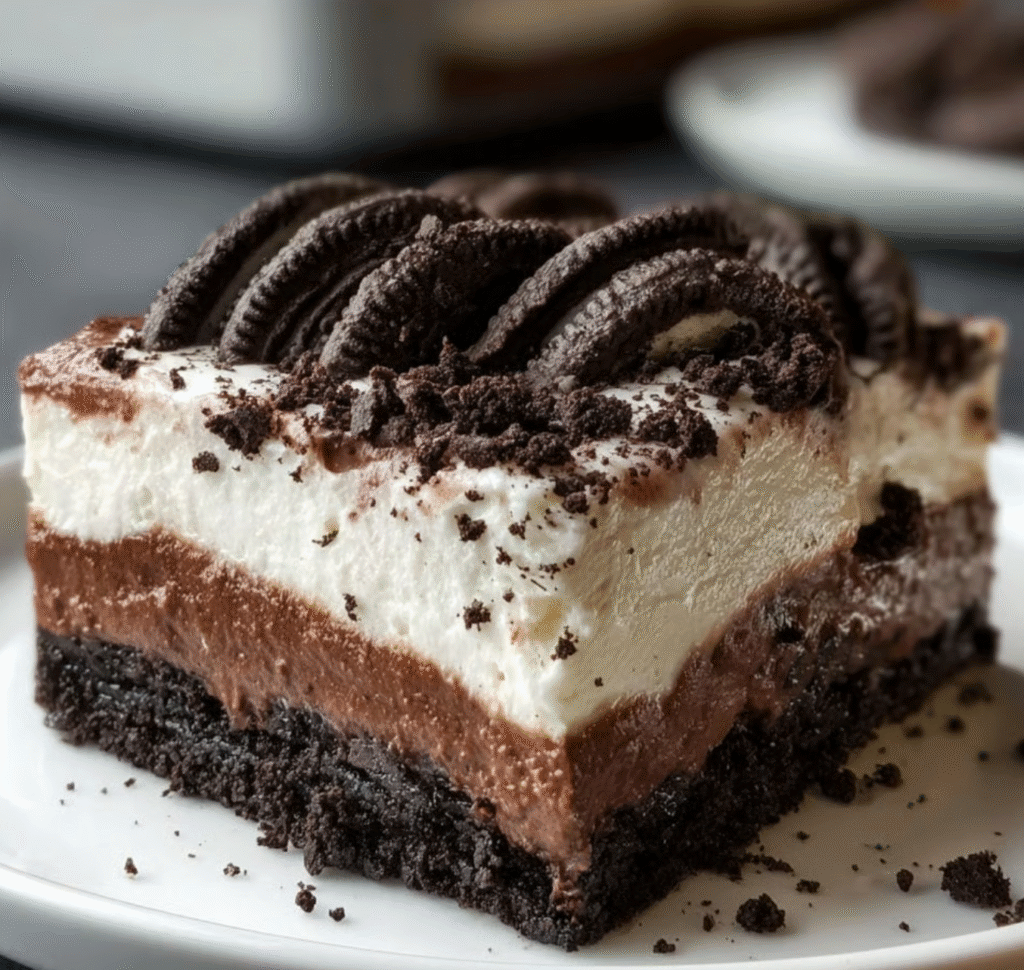 The Oreo Lasagna works on the principle of temperature-based setting rather than heat-based cooking. The crust relies on the saturation of cocoa-rich cookie crumbs with butter, which solidifies when chilled to create a firm base. The “cheesecake” layer utilizes the stabilizers in Cool Whip and the fat in cream cheese to create a structure that is airy yet firm enough to support the weight above it. Finally, the instant pudding relies on modified food starches that gelatinize rapidly when introduced to cold milk. By layering these different viscosities and allowing them to set in a cold environment, you create a cohesive unit that offers a complex mouthfeel—crunchy, creamy, and silky—in every bite. Nutritional Note: This is a high-calorie, high-sugar dessert. Enjoy in moderation.