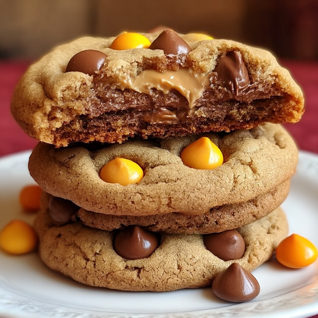 Inspired by the iconic Reese’s brand and a love for all things peanut butter, this recipe is a tribute to indulgence. The genius lies in layering different textures and intensities of peanut butter flavor—from the smooth base dough to the crunchy Reese’s Pieces, creamy peanut butter cups, and sweet peanut butter chips. Each bite delivers a symphony of peanut butter and chocolate that creates an almost candy-like experience in cookie form.