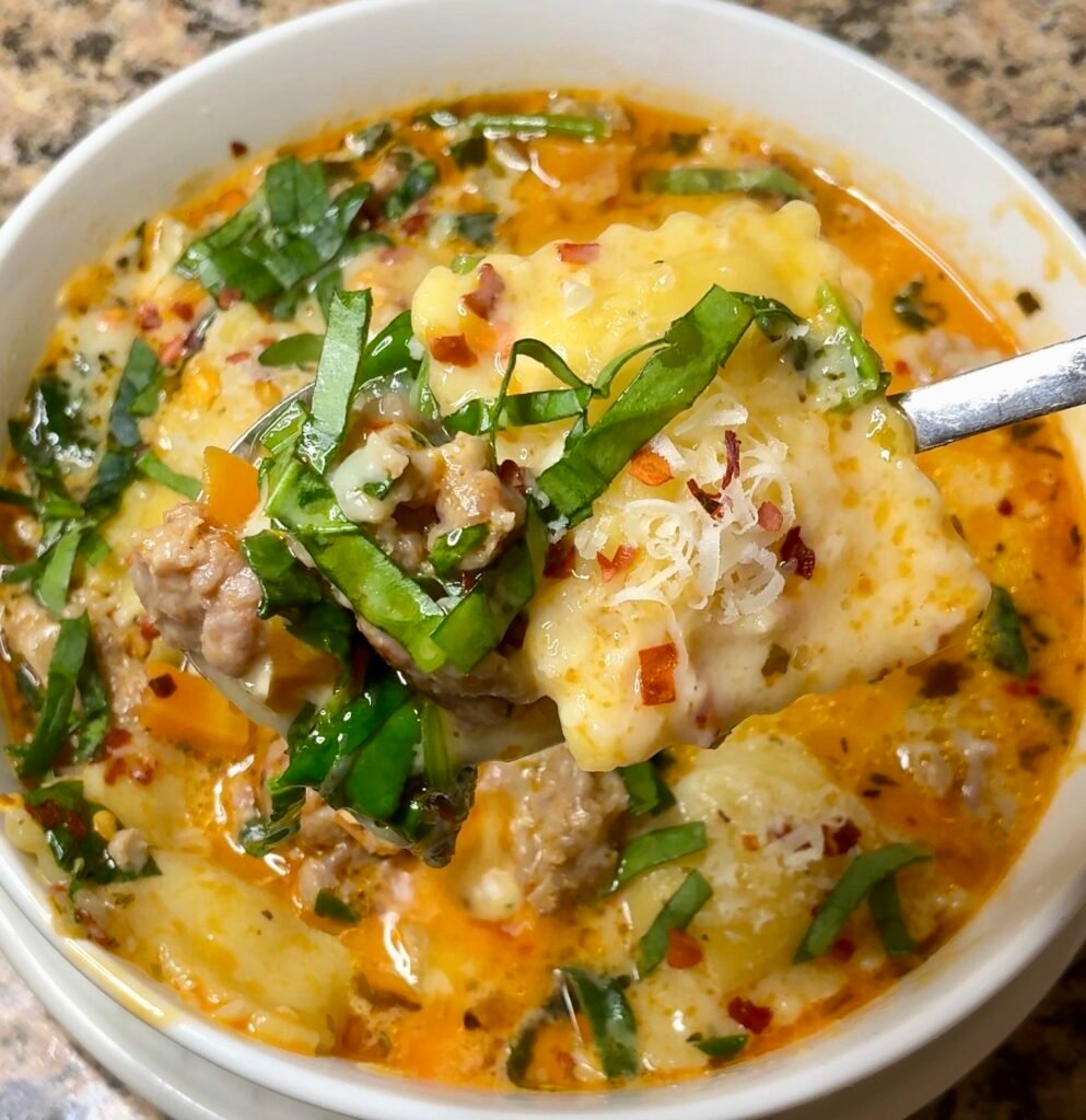 This cozy, restaurant-worthy soup features tender cheese ravioli and savory Italian sausage submerged in a silky, herb-infused broth. Enhanced by the concentrated sweetness of sun-dried tomatoes and a touch of heavy cream, this dish delivers a sophisticated “Tuscan-style” flavor profile that is perfect for cool-weather dining.
